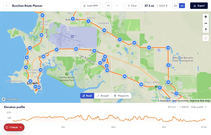 Already have a GPX file from Strava, RideWithGPS, Komoot, or your GPS device? Load it straight into the Bunchies route planner. Control points are sampled from the track so you can drag, delete, and extend the route however you like, then re-export with accurate terrain elevation baked in.